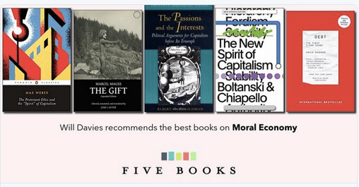 Interview with Five Books website, for which I selected the them of ‘moral economy’. The selected books are by Max Weber, Marcel Mauss, Albert Hirschman, Luc Boltanski & Eve Chiapello and David Graeber.